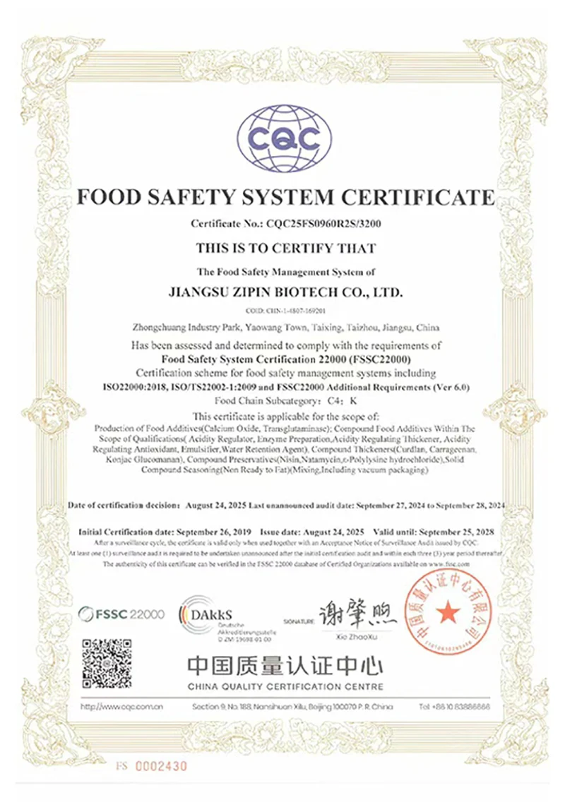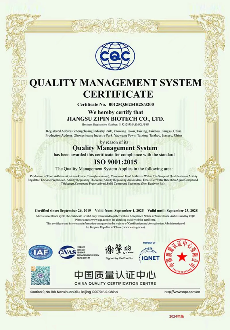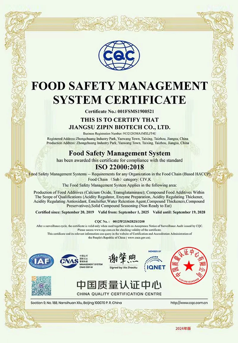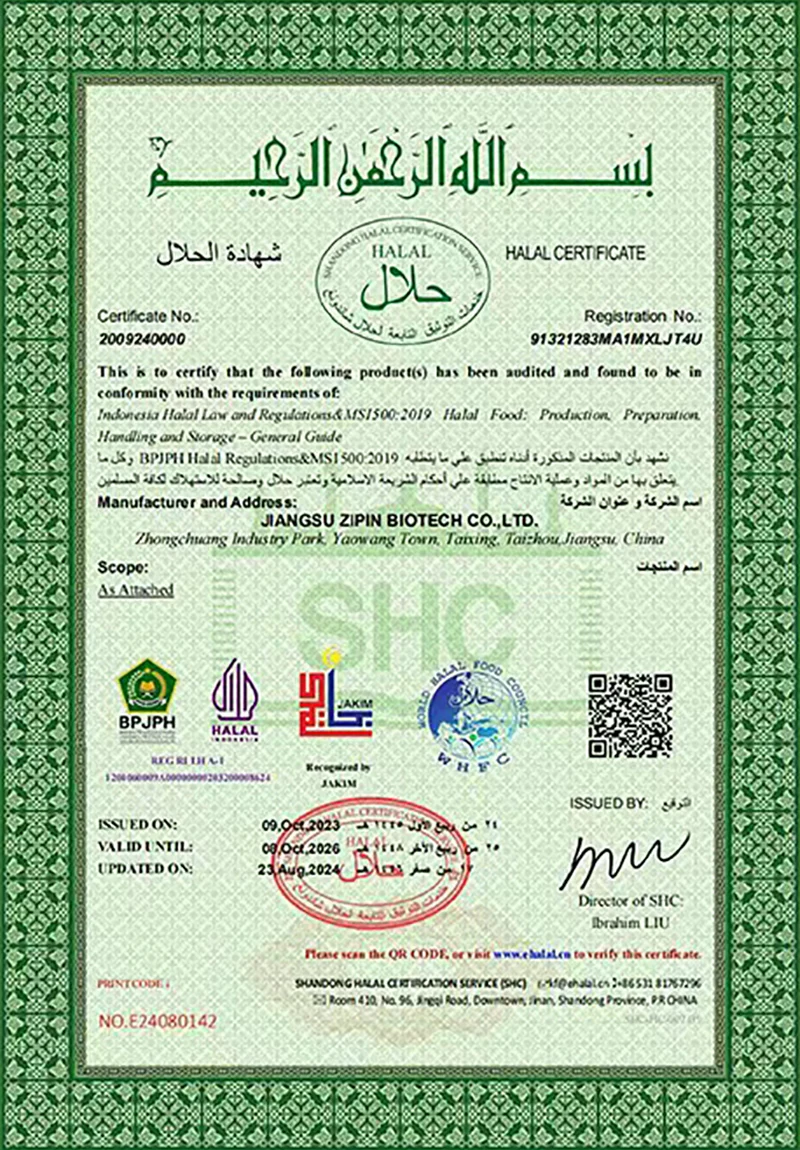 جیانگسو زپین بائیوٹیک کمپنی ، لمیٹڈ۔ 2016 میں قائم کیا گیا تھا ، جس میں 20،000㎡ کے رقبے کا احاطہ کیا گیا تھا۔ ایک جدید نجی انٹرپرائز کی حیثیت سے ، اب ہم بنیادی طور پر کھانے کی اضافی چیزوں کی آر اینڈ ڈی ، پیداوار اور فروخت میں مصروف ہیں۔ ہماری اہم مصنوعات ہیںtransglutaminase, کرڈلان، کے لئے ، کے لئے ، کے لئے ،. poly-polylysine، نیسن ، نٹامیسن اور دیگر کھانے پینے والے۔
